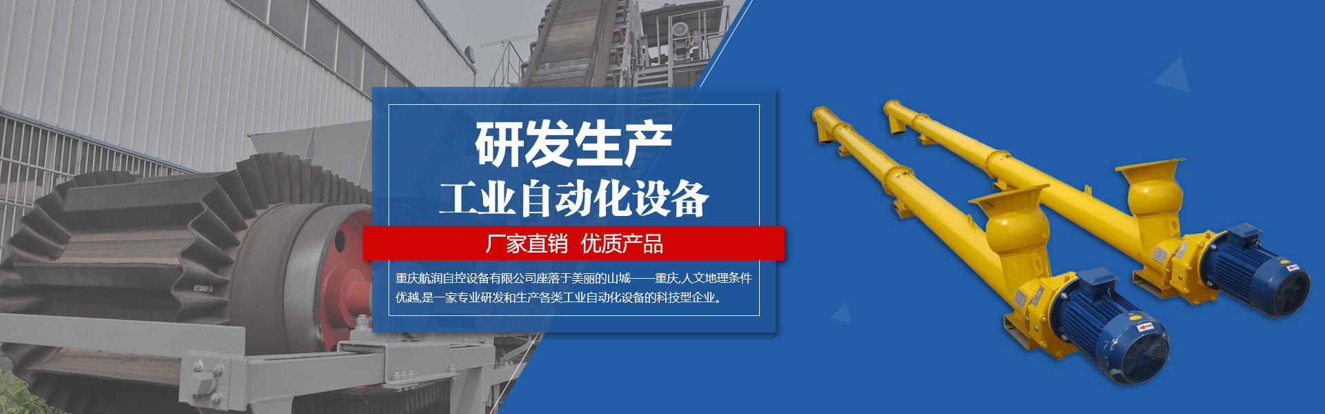 重慶航潤(rùn)自控設(shè)備有限公司座落于美麗的山城重慶,人文地理?xiàng)l件優(yōu)越,是一家專(zhuān)業(yè)研發(fā)和生產(chǎn)各類(lèi)工業(yè)自動(dòng)化設(shè)備的科技型企業(yè)。 公司主要產(chǎn)品有: 帶式輸送機(jī)、 螺旋輸送機(jī)、 刮板輸送機(jī)、 板 式輸送機(jī)、斗式提升機(jī)、各類(lèi)型定量給料機(jī)、 電子汽車(chē)衡、 電子皮帶秤 及無(wú)人值守式稱(chēng)重管理系統(tǒng);定做食品 、醫(yī)藥、港口、物流、電子等各種類(lèi)型的智能自控設(shè)備。 公司已通過(guò)ISO9001:2000國(guó)家質(zhì)量體系認(rèn)證,堅(jiān)持以高起點(diǎn)、高標(biāo)準(zhǔn)、高質(zhì)量的生產(chǎn)經(jīng)營(yíng)方針,對(duì)生產(chǎn)流程實(shí)行全面化質(zhì)量管理。公司注重培養(yǎng)一支