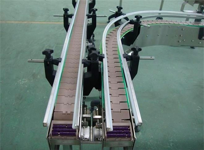 流水線的鏈板厚度,一般要考慮因素:每塊鏈板必須能承受住相應(yīng)物料的總重量,并且撓度要限制到最小,這樣才能防止鏈板在搭接處的彎曲;裝載時下落的塊狀物料沖擊會引起鏈板變形;被輸送物料的磨琢性;腐蝕性及耐化學(xué)反應(yīng);預(yù)期的使用壽命;經(jīng)濟(jì)費(fèi)用(造價)的限制。