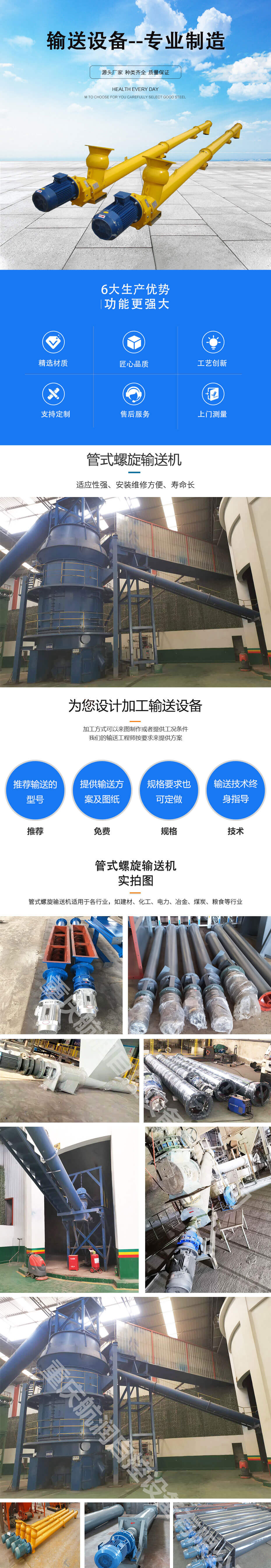 管式螺旋輸送機(jī)是礦產(chǎn)、飼料、糧油、建筑業(yè)中用途較廣的一種輸送機(jī)設(shè)備,對各種粉狀、顆粒狀和小塊狀等松散物料的水平輸送和垂直提升。如煤、灰、渣、水泥、糧食等。 承載能力大、適應(yīng)性強(qiáng)、安裝維修方便、整機(jī)體積小、密封性好、布置靈活;廣泛應(yīng)用于建材、化工、礦冶、電力、糧食等工業(yè)部門。