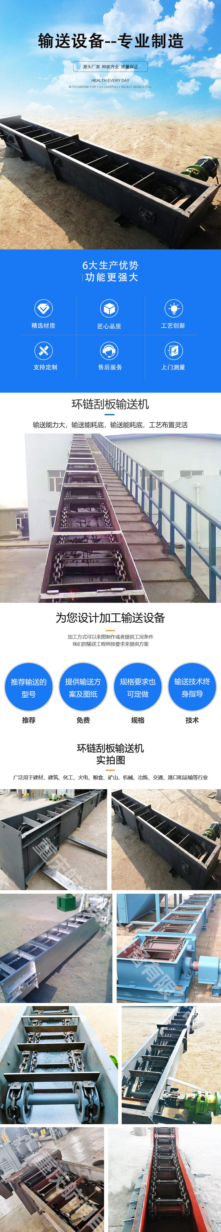 環(huán)鏈刮板輸送機輸送能力大、能耗底、密封性好、安全環(huán)保、運行可靠、使用壽命長、工藝布置靈活,廣泛用于建材、建筑、化工、火電、糧食、礦山、機械、冶煉、交通、港口和運輸?shù)刃袠I(yè)。